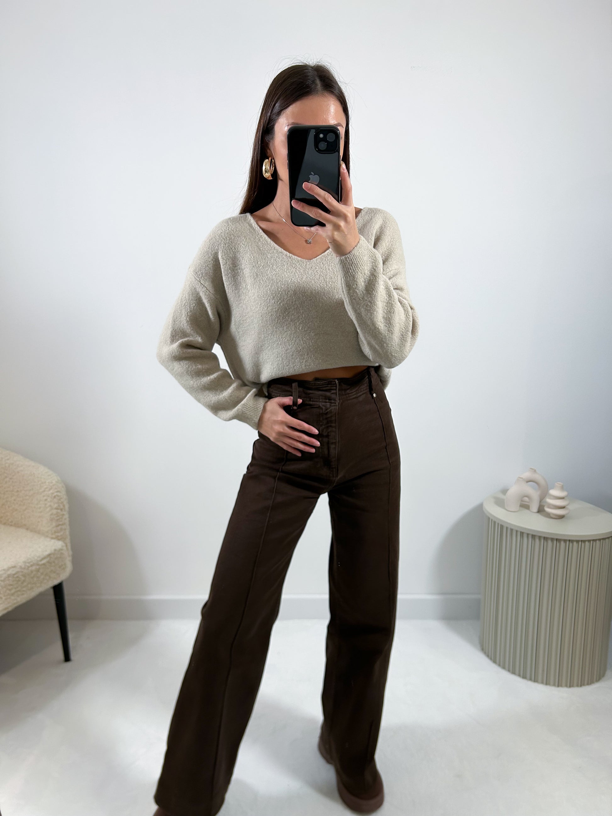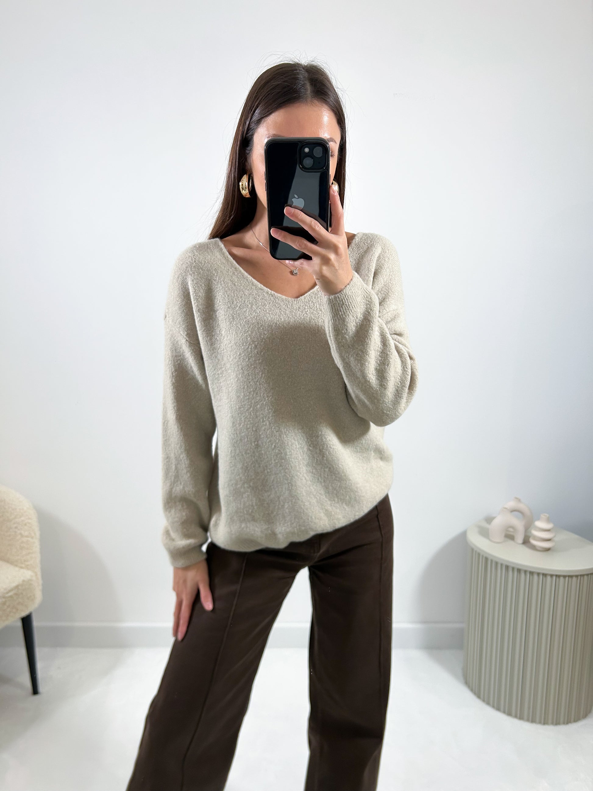 • Pull col V tout doux avec manches longues
