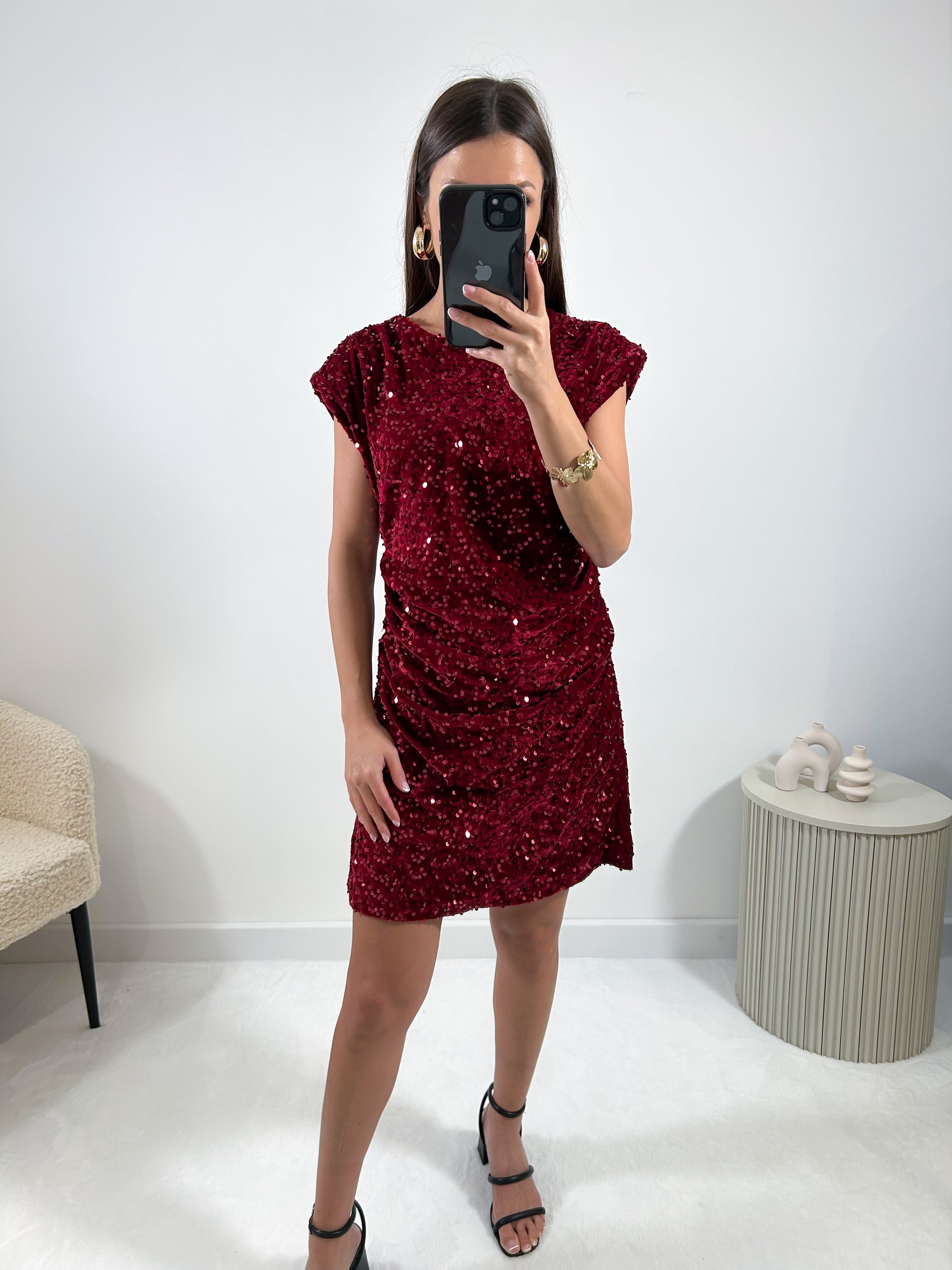 • Robe à sequins avec épaulettes